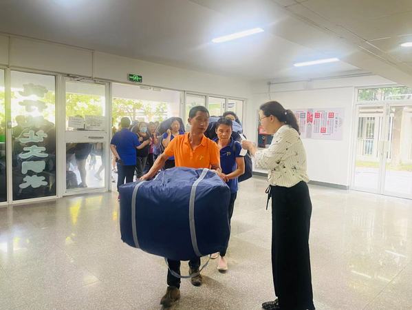 8月底,南京依旧持续高温,公寓集合全员力量将学生所需1500套卧具搬上一层层楼,布放入学生寝室内床位上,一趟趟下来所有人的衣服都早已被汗水浸湿,浑身酸痛。但看到一套套整齐摆放的卧具包,想象到新生到来时拆开时的欣喜,所有劳乏已不在心上。