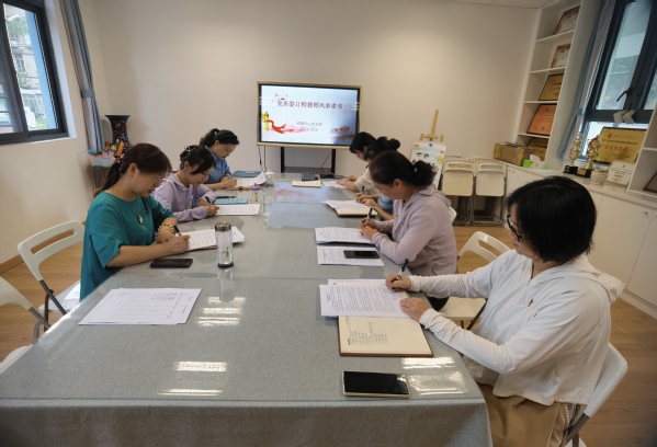 为了进一步发挥党员的榜样示范作用,集中学习会后,支部书记带领全体党员签订师德师风承诺书。引导广大教师提升自身修养,弘扬爱岗敬业,为人师表的基本职业美德。