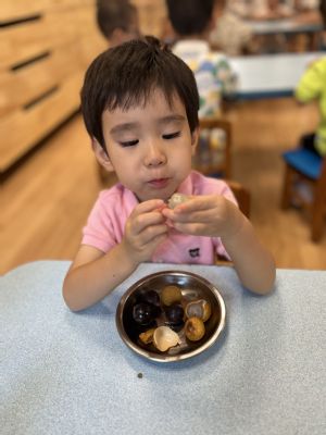 秋意越来越浓,天气干燥,皮肤也易干燥,这时要补水,吃些时令水果,比如龙眼、葡萄、石榴等。让我们跟随着小班的幼儿一起来看一看、摸一摸、闻一闻,品尝这又香又甜的龙眼和葡萄吧!