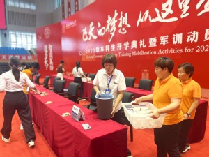 典礼进行过程中,中心员工在会场外随时待命,及时为有需要的领导、师生服务。典礼结束后,他们依然耐心等候散场,坚守岗位,对会场进行收尾清理,保证布置工作有始有终,圆满完成了本次2707名新生开学典礼暨军训动员大会的保障任务。