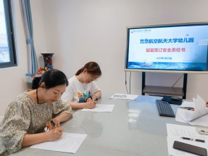 为了严格落实“安全第一,预防为主”的方针,培训结束后,全体教职工层层签订了安全责任书。幼教中心副主任吉欢重点强调了幼儿园安全工作的重要性,特别强调了网络安全管理的重要性。提醒全体教职工在工作中,始终牢记安全第一,明确自己的安全职责,在日常工作中主动发现安全隐患,主动上报,跟踪监督直至隐患解除。在幼儿日常的教育教学中贯穿安全教育知识,不断增强幼儿的安全防范意识。