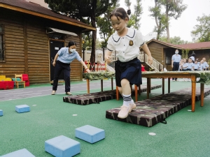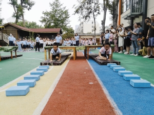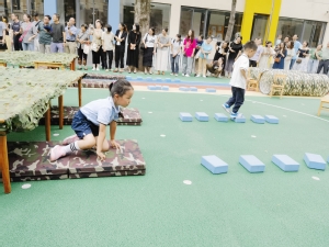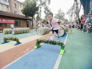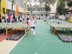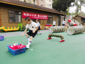 项目游戏最能体现“小小兵”们动作协调能力,面对挑战,“小小兵”们纷纷使出浑身解数,在各种迷彩器械搭建的“丛林”“草地”“隧道”“独木桥”间飞跃、奔跑、跨跳、钻爬,“小小兵”们的勇气和坚韧不拔的毅力在此刻迸发。勇往直前、匍匐前进、快速穿越,每一项技能中都表现出他们的坚强意志、团结拼搏的集体荣誉感。