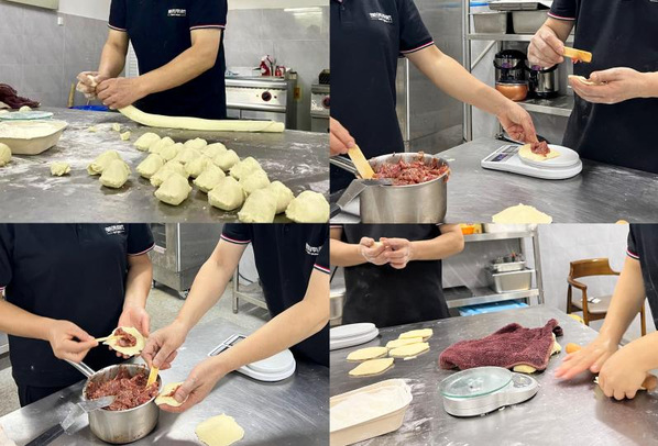 为保证月饼最佳口感,鲜肉月饼均由南航食堂面点师傅利用休息时间加班加点现场赶制,经过揉面和面等层层工序,纯手工匠心制作,打造经典酥皮,放入精选馅料,高温现烤现制,保证顾客能尽快收到新鲜出炉的美味。