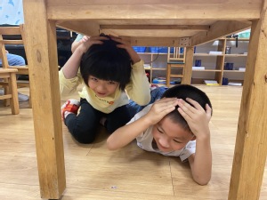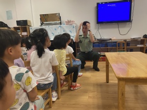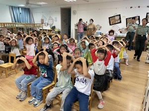 学员们结合今天的主题对幼儿们进行了“以防空防灾为主题”的安全教育,引导幼儿了解警报响起时应该做些什么、怎样保护自己等逃生技巧,让幼儿对本次演练有了初步的了解与准备。