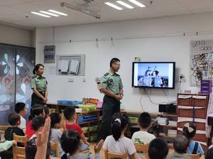 本次活动,我园邀请中国人民解放军陆军工程大学的学员走进课堂,共同参与红色课程教学。学员们从国防的涵义讲到我国基本国防情况,从国防的策略讲到我国现代化国防建设以及相关政策知识,并详细讲解了时代楷模的故事,带领幼儿重温革命先辈的艰苦奋斗历程,引导幼儿铭记历史、珍爱和平,激励大家行动起来,努力学习知识、增强本领,为强国复兴贡献自己的力量。随后,学员们还为幼儿讲解了科学技术中的防御系统,着重介绍了我国的军种分类及作战装备,幼儿全神贯注地倾听,现场学习氛围非常浓厚。