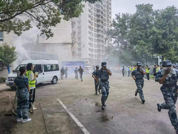 为进一步加强学校安全工作,提高全体学生防火减灾意识和应急处理能力,9月14日下午,学校在将军路校区高层学生公寓21栋举行了一次大规模消防演习。保卫处联合学生处、将军路校区管委会、校医院、后勤集团等部门参与配合此次消防演练。1400余名新生参与了消防演练、其他1200余名新生、辅导员及教官现场观摩。
