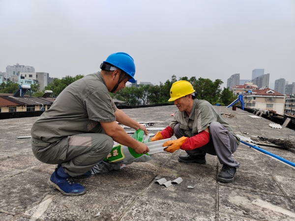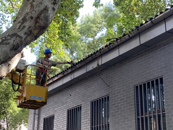 楼顶堆积的淤泥、杂草或落叶等会导致雨水排放不畅,造成屋顶渗水漏水和墙皮脱落,不仅影响房屋的安全性和美观度,而且影响师生正常教学科研工作。面对这种情况,为消除安全隐患,水电与维修服务中心领导高度重视,并开展了 “屋面清淤”专项清理工作。中心修缮队在重点查看了校园屋面边沟、屋顶落水管等易出现堵塞的场所后,制定了详细的清理方案,有序开展对我校楼宇屋面杂物、天沟、檐沟的淤泥垃圾和碎石子等进行清理。