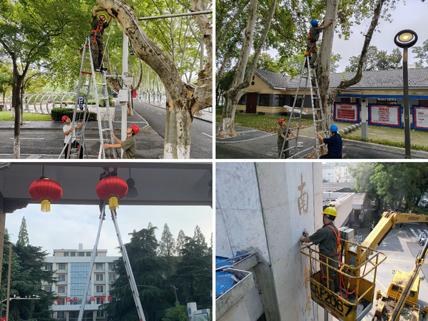随着中秋节和国庆节的临近,同时为庆祝中华人民共和国成立74周年,水电与维修服务中心积极开展了“亮化校园,献礼国庆”行动。通过精心布置和维护,努力为全校师生营造了欢乐祥和的节日氛围。