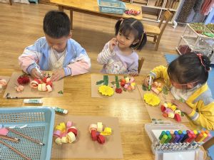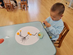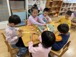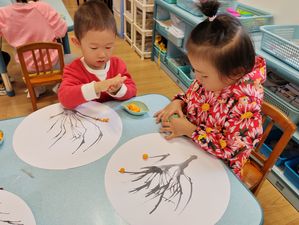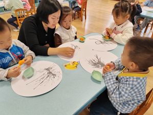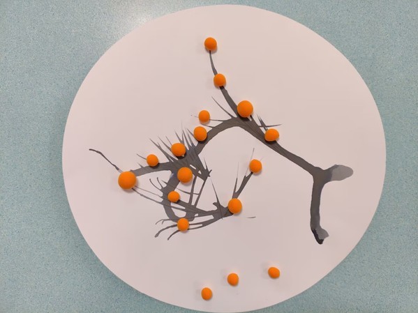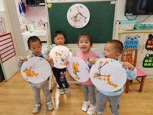 “柿叶翻红霜景天”,寒露时节也正是柿子丰收的季节,一个个黄澄澄、红彤彤的柿子,就像一个个小灯笼似的挂在树上,真是又好看又有趣。小班幼儿进行手工制作“柿柿如意”,他们用超轻粘土通过团、压、粘还原柿子树,让幼儿感受到了寒露节气柿子丰收的美好景象。