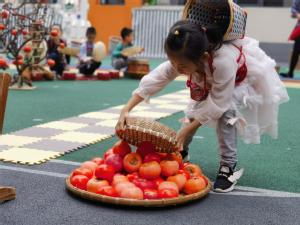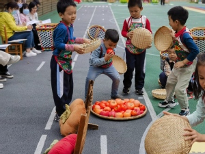 秋天到了,果园里的“柿子”丰收了,大班幼儿开展了一场“摘柿子”的体验活动。活动中孩子们跟着音乐学习了摘柿子的动作要领,体验了摘柿子的劳动过程,感受到了丰收的喜悦。在感受劳动、体验劳动的过程中提高了生活技能,增强了互助合作意识,激发了热爱劳动、珍惜劳动成果的美好情感和良好品质。
