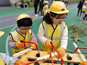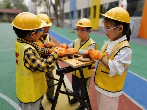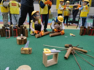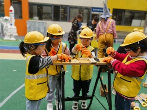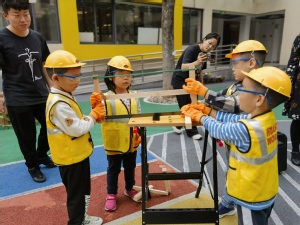 木工活动是幼儿非常喜爱的游戏,在“小小建筑工”的活动中,老师通过情景游戏激发幼儿动脑筋想办法,初步了解盖房子的步骤。孩子们在使用锯子、刨子、螺丝刀、钉子等劳动工作体验中,直接获得生活经验,感受到了劳动的快乐,体会到了建筑工搭建房子的劳动艰辛。