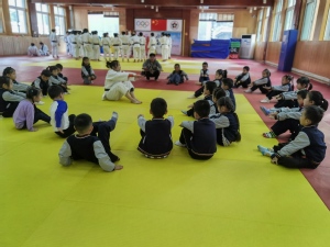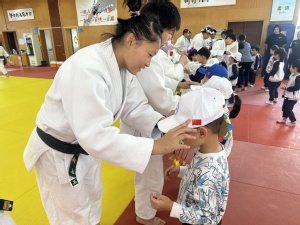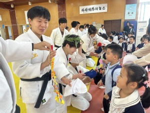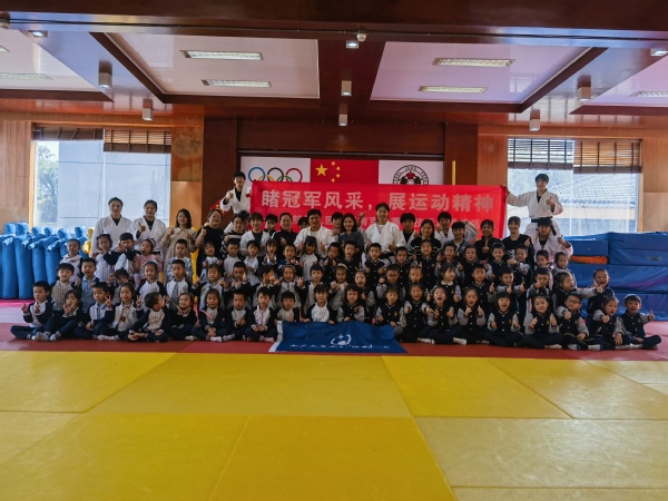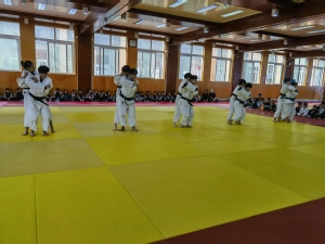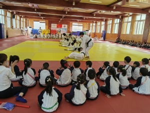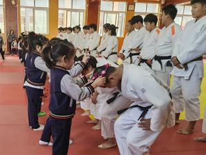 紧接着王娟和运动员们给孩子们带来了一场柔道展演活动,他们以柔克刚、刚柔相济的摔打动作让孩子们惊叹不已,激起了孩子浓厚的兴趣。展演后还向孩子们讲授了柔道项目中的技巧动作,如“倒地”“自护体”等基本动作,将基础性保护技巧悉心传授给孩子们。