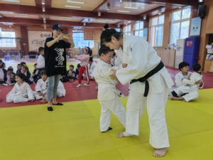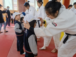柔道是什么呢?世界柔道团体锦标赛冠军、江苏省女子柔道队的主教练王娟与孩子面对面交流,她用简洁的语言向孩子们介绍柔道的特点和基本礼仪,让孩子们了解柔道可以让身体变敏捷、灵活、增强体质。