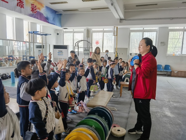 运动学校的老师带着孩子们先参观了体重训馆。整洁的训练场地,各种各样的训练器械,引起了幼儿极大的兴趣,他们不时地说一说、问一问,还亲自体验了一把杠铃的重量。在老师的耐心介绍下,孩子们知道了运动学校是参加体育锻炼和进行体育比赛的地方,参加不同的运动项目要在指定的地方。老师还鼓励孩子们要多参加体育锻炼,才能有健康的身体。