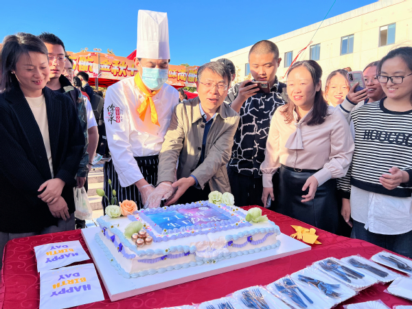 10月20日校庆当天,饮食服务中心准备了定制校庆蛋糕,满载着后勤人的美好祝福,向学校71周年校庆献礼。下午四点,后勤集团党委书记王国军切开校庆蛋糕,与工作人员一起把蛋糕分送到现场师生手中,与大家共享甜蜜,共为南航庆生。