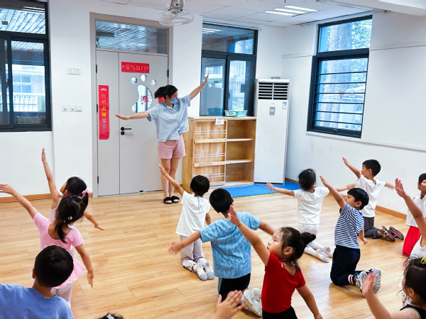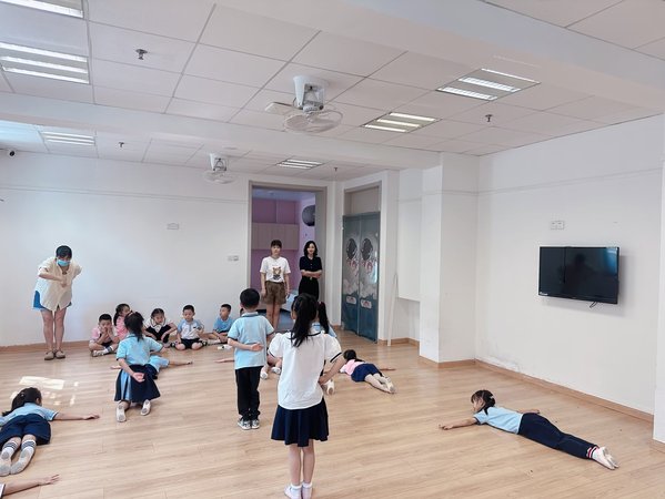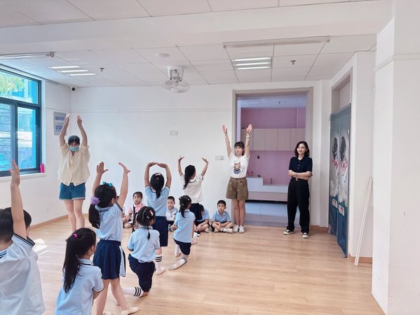 7月10号,第一阶段排练开始。“小演员”们放弃暑假休息,仅用短短5天的时间就学会了主题动作和基本队形变化。
