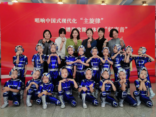 活动现场,南航幼儿园的小朋友们用原创舞蹈《我有一个梦想》和五老村小学、南京航空航天大学附属高级中学以及南京航空航天大学的师生们一起代表秦淮区同上一堂大思政课——《我们都是追梦人》。他们用天真烂漫的笑容、整齐划一的动作,热情歌颂了伟大的祖国,表达了新时代的少年儿童在党的阳光下健康成长、放飞梦想的良好愿望,获得了在场专家与观众热烈的掌声与一致好评。