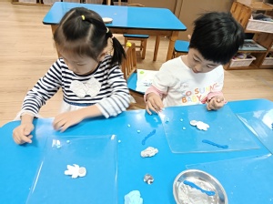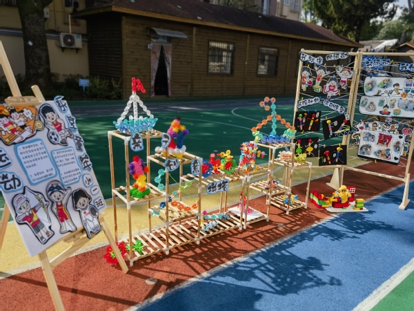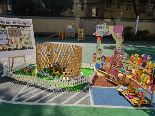 孩子们和老师利用黏土、毛根、小棒等材料创作了各种运动造型,用日常的玩具拼搭了运动器械,用照片展示了孩子们运动的精彩瞬间。