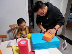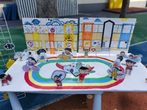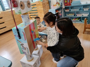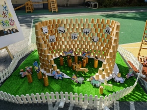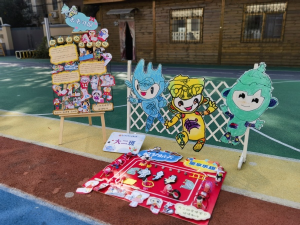 大一班孩子和老师集体制做第19届杭州亚运会主会馆,让大家一起了解亚运会,并希望通过布展传达“快乐运动,传递健康”的理念。