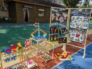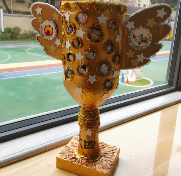 孩子、老师、家长巧手构思,利用废旧物品制作成奖杯、奖牌、运动工具、运动达人,在制作的过程中不仅感受了运动精神,也加深了环保意识和理念。