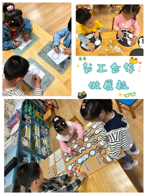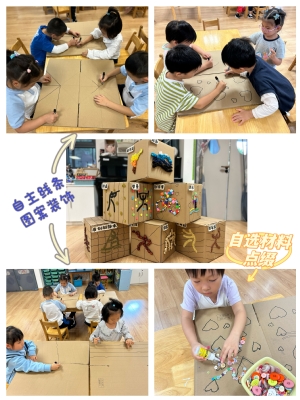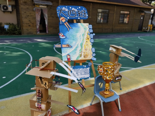 “在游戏中锻炼,在游戏中成长”,孩子们共同讨论,分工合作,用纸箱、小椅子、保鲜膜等材料打造了游泳运动项目的不同场景,展现了游泳健将们的运动风采。大四班孩子们布展热情积极,布展内容持续完善中,让我们期待运动会上的精彩亮相吧!