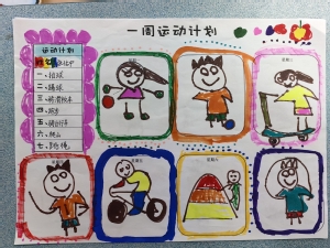 运动会开始前,中班孩子用图表、画画等形式制定自己的个性化一周运动计划,并用绘画等形式记录下自己的运动打卡轨迹。他们互相鼓励天天坚持运动保持身体的健康,努力练习争取在运动有精彩的表现。