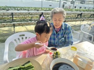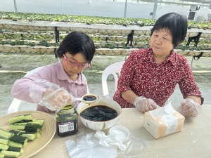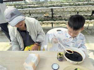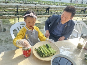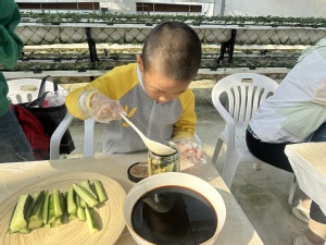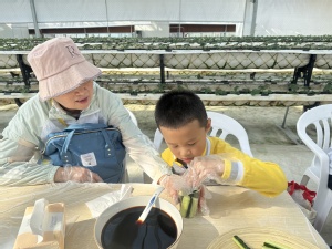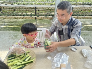 腌呀腌,腌黄瓜:园区里的黄瓜成熟了,孩子们一起来体验传统的储藏食物的方法“腌制”。在工作人员向孩子们介绍腌制黄瓜所要的食材、工具、操作步骤和注意事项时,孩子们都竖起小耳朵认真听,小手抑制不住内心的激动,跃跃欲试。终于可以动手了,孩子们有模有样地将黄瓜一层一层摞好,再浇上卤汁,美味的腌黄瓜就制作完成啦!
