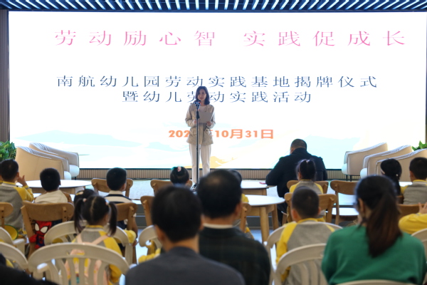 为强化劳动观念,弘扬劳动精神,促进幼儿德智体美劳全面发展,提高幼儿劳动技能和实践水平,10月31日上午,南航幼儿园劳动实践基地揭牌仪式在南京市永宁都市现代农业产业示范园区举行。南京市永宁都市现代农业产业示范园区管委会主任李钢,幼教中心主任陈慧云,幼教中心部分党员、教师代表及大一班幼儿和家长参加此次活动。