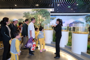 在园区内,讲解员用互动的方式向孩子们介绍“水稻种植”“青虾养殖”“管道栽培”等新农业知识。参观过程中,孩子们被现代农业科技设施设备深深吸引,无人机、农耕机、收割机等农耕设备对于孩子们来说充满了神秘感,他们迫不及待地向讲解员寻求答案,在讲解员的介绍下,孩子们了解现代科技种植的魅力。