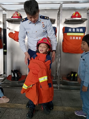 2023年11月9日即将迎来第32个全国消防日,为了进一步普及消防知识,切实增强师幼消防安全意识和火灾自防自救能力,11月3日,南航幼儿园中一班组织幼儿及家长一同走进南京市玄武区消防救援大队逸仙桥站,开展了主题为“童访消防队,致敬火焰蓝”的亲子社会实践活动,零距离体验消防的魅力。