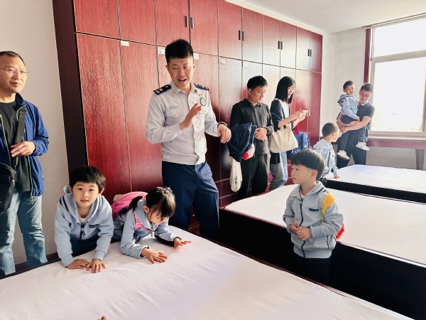 消防员住的地方是什么样子的呢?小朋友们走进消防员生活区,刚进寝室,小朋友们发出惊呼,他们被整齐划一的内务环境所折服,衣服整整齐齐、被子方方正正……每到一处,都赞叹不已,小朋友们不约而同地鼓起掌来,对这样整洁干净的房间充满了敬佩之情!