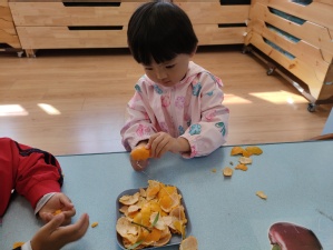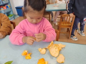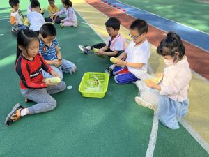 准备“晒秋”啦,孩子们都变身小小劳作者,为晒秋活动做准备,有的负责清洗,有的负责剥皮,有的负责晾晒。他们忙碌的身影,还有在架子上、围栏边到处晾晒的稻谷、豆子、山芋、柚子皮、山楂等,组成了幼儿园一道亮丽的风景线。
