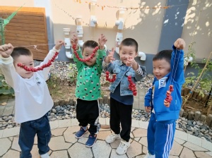“我也会晒秋啦!”孩子们展示着自己的晒秋成果,无比地兴奋与激动,在分享交流中感受自然生长、五谷丰登的生态之美,共同体验丰收的喜悦。
