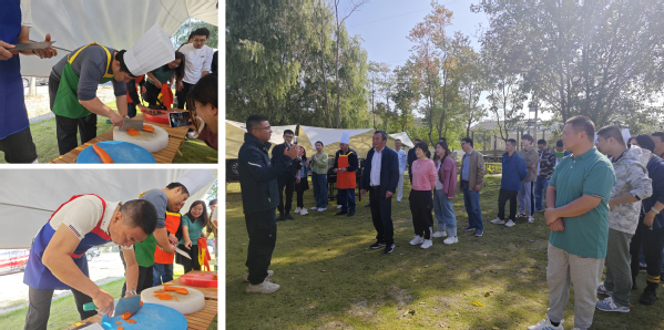 迎着秋日暖暖的阳光,一行近三十人在欢声笑语中开启了美好的清晨,经过四十分钟的车程,来到了团建基地——南京市栖霞区桦墅村。此次团建活动主要有两项内容,一是厨艺大比拼,二是健康徒步走。在厨艺大比拼活动开始前,团建教练通过小游戏将全体成员平均分成三支队伍,每支队伍推选出一名队长和一名主厨,带领本队成员完成菜品制作。在分组小游戏环节,每位员工心态放松,放下工作时的拘谨状态,主动融入团队,现场欢声笑语不断,气氛融洽。分组后,三支队伍正式进入厨艺大比拼环节。各位大厨大展身手,帮厨密切配合,从菜园摘菜,到洗菜切菜,再到下锅烹饪,通力协作,一气呵成。经过大家的精心制作,一道道色香味俱佳的菜品陆续摆放在餐桌上,令人垂涎欲滴。