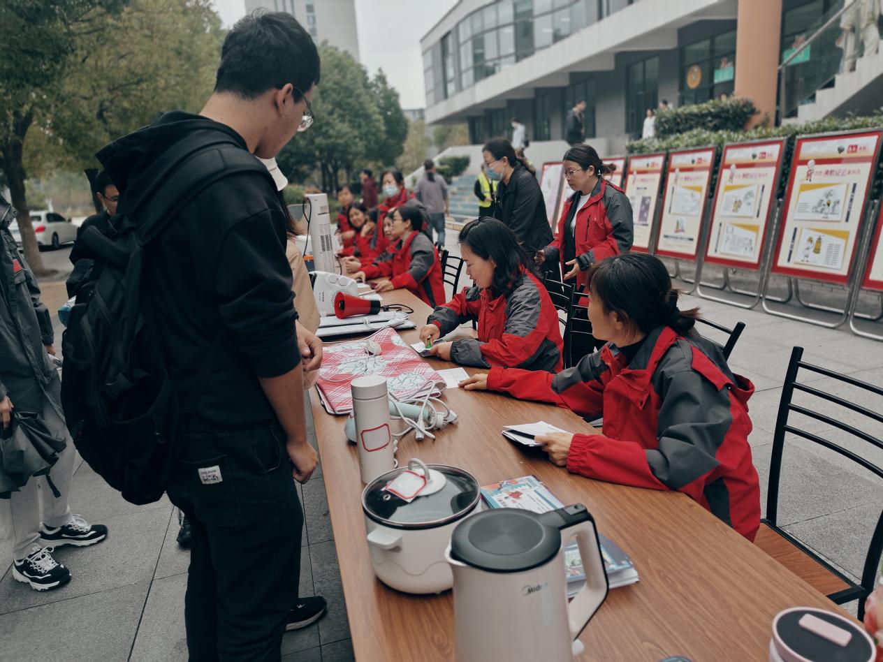 2023年11月9日是我国第32个“全国消防日”,主题为“预防为主,生命至上”。为增强我校师生的消防安全意识,提高公寓员工在突发事件中的应急和逃生能力,保卫处消防科请公寓服务中心在将军路校区和园食堂门口广场开展违章电器警示展并参与安全教育体验馆消防知识培训。