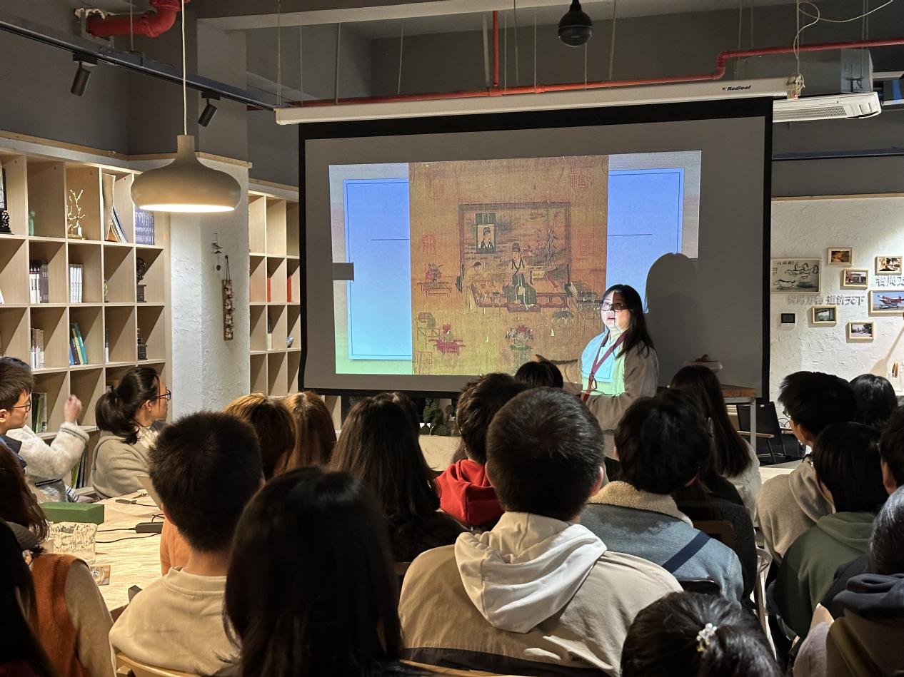首先徐寅岚老师给大家上了一堂精彩的花道美学理论课,通过古今、中西对比,让大家了解中国插花艺术的独特魅力。中国插花,体现了中国哲学思想中儒、释、道文化所追求的自然境界,融入了中国诗、画的文化内涵,其风格主要以体现花材的自然美、线条美和意境美。现场同学与徐老师踊跃互动,分享自己的插花经历以及对插花的认识等。