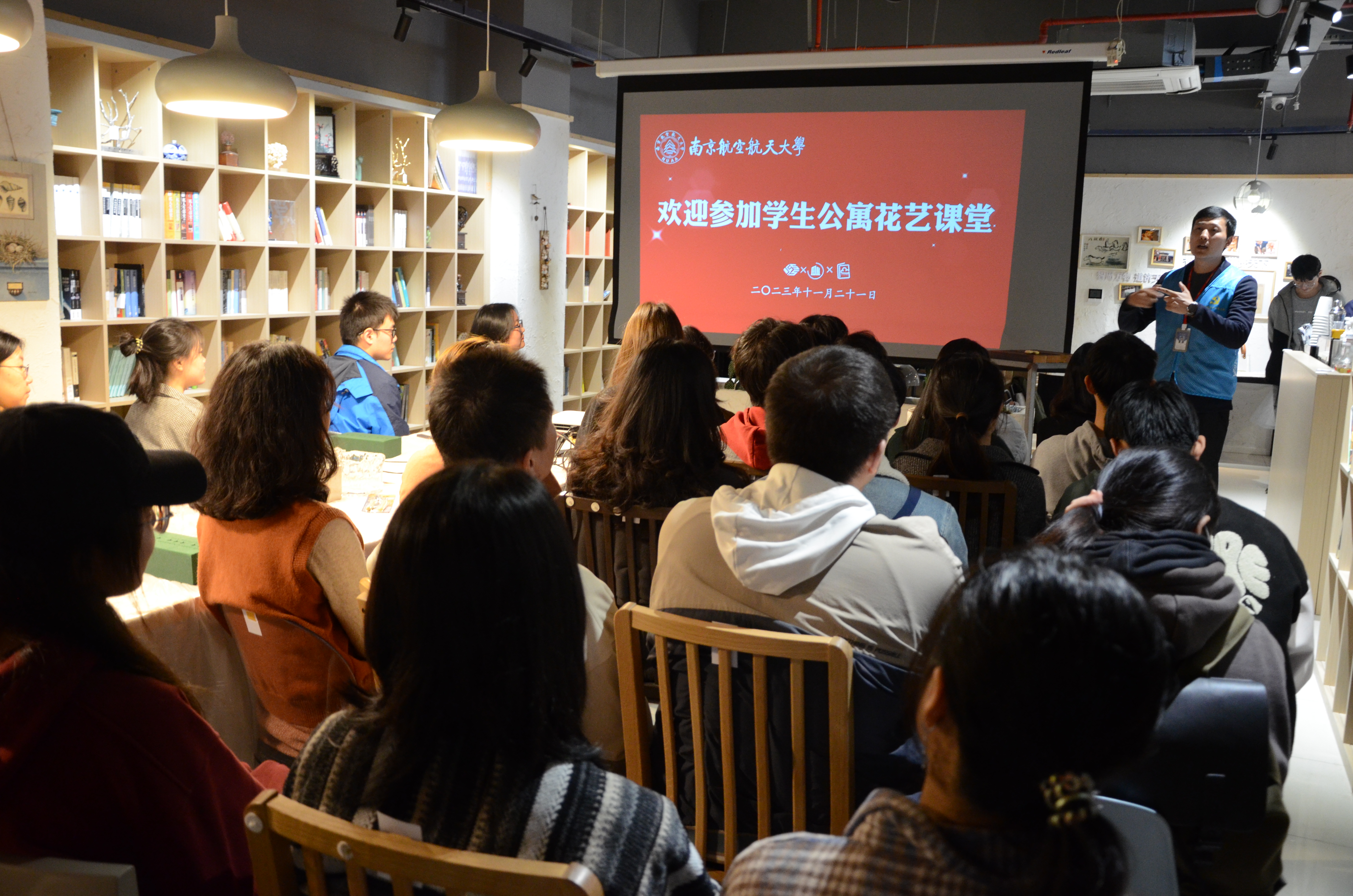 为打造学生公寓社区文化建设,丰富学生在公寓区的文化生活,11月21日下午,公寓服务中心联合教育超市、云想书吧举办了一场独具文化特色的花艺课堂活动。此次活动特别邀请了国内优秀插花专家徐寅岚老师、陶然老师为近40名学生讲授插花知识与技巧。