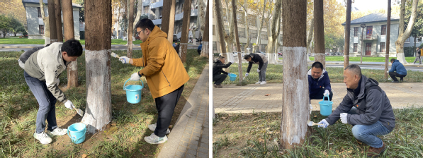 11月27日,校园服务中心党支部与机电学院党委电化学制造团队研究生第一党支部在明故宫校区开展了主题为“树木涂白穿新衣,御寒防虫过严冬”支部共建活动,两支部共计三十余名党员和入党积极分子参加了此次共建活动。