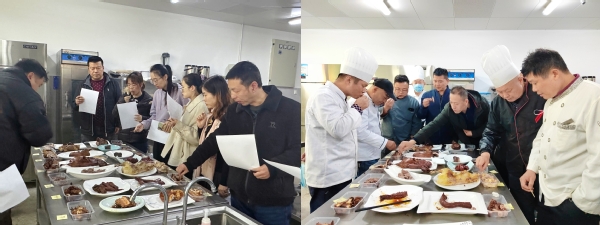 培训前,各食堂骨干厨师通过研发试菜,尝试将各种主料按照规定的配比进行搭配和烹制。培训现场大家对卤制品的色泽、口感、卤汁和烹调手法进行了充分交流,并深入探讨了加工制作的关键步骤。培训还采取现场品鉴和评选的方式,确定出适合食堂售卖的品种。培训现场充满了浓厚的学习交流氛围,厨师们纷纷表示通过培训学到了实用的技能和方法,收获了新的思路和灵感。