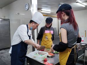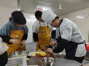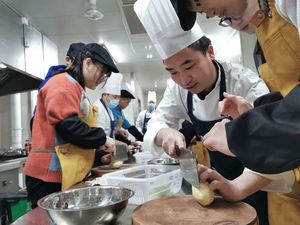 作为厨师长,许祥桥负责餐厅后厨的日常管理工作,在管理协调人员的同时兼顾菜品的生产和调配工作,确保菜品质量达标,同时为原料采购提供指导和协助。作为厨艺课堂红案讲师,他兢兢业业,加班加点,每一次教学从原料准备到学生操作,都离不开他的一一把关。