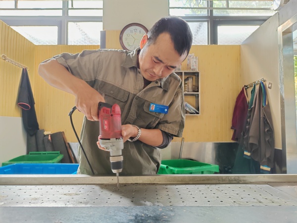 陈道付出生于农村,是一名普通的水电工。2014年有幸来到南航后勤水电与维修中心工作,他倍感珍惜。作为南航食堂水电设备的维护与维修人员,他为食堂的正常运转提供了良好的支持。