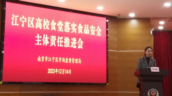 为进一步落实食品安全“两个责任”,夯实食品安全基础,提高食品安全保障水平,12月14日,南京市江宁区市场监督管理局召开高校食堂食品安全主体责任推进会,饮食服务中心副主任刘伟、中心质监办主任周琳玉参加会议。