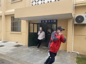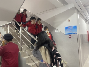 上午9点半,演练正式开始。宿舍楼模拟“着火”引发烟雾报警系统,楼栋值班室和消防科总控室同时接到火情警报,值班员第一时间一键开启所有消防通道门,同时赶赴“起火点”确认火情以及进行初期扑救。在确认“模拟火情”不可控的情况下,值班员及附近楼栋员工相互配合,对楼内住宿的师生员工进行引导疏散。