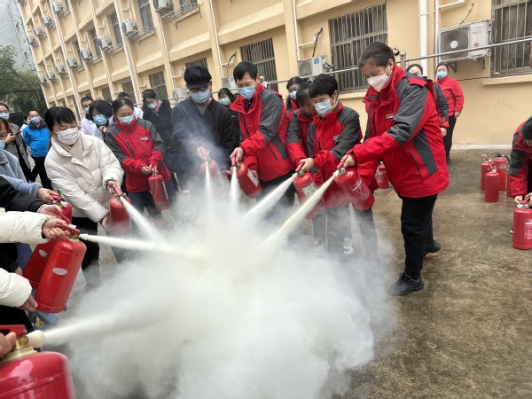 演习活动结束后,后勤集团员工在保卫处消防科人员的指导下,进行了灭火器使用的实操培训。