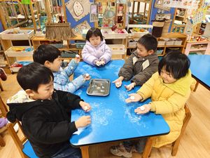包汤圆:吃汤圆是冬至的传统习俗,“圆”意味着“团圆”“圆满”,冬至吃汤圆又叫“冬至圆”。开始包汤圆啦,中班孩子们迫不及待动手尝试,他们取一块面团通过搓、揉等步骤最后变成一个汤圆。孩子们在自己动手、与小伙伴共同合作中收获了成功和快乐。
