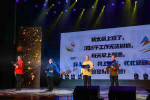 晚会在天目湖校区服务中心歌舞表演《青春畅想》中拉开帷幕,参演员工激情满怀,踏着律动的节拍,舞动青春活力,展现了后勤人对美好未来的无限畅想;饮食服务中心带来情景歌舞剧《食堂狂“享”曲》,通过诙谐幽默的情景剧和丰富多彩的歌舞,喜剧化呈现食堂员工辛勤工作及乐享生活的精彩场景,展现饮食人积极向上的精神风貌;幼教中心老师们演绎了音诗舞《赓续初心 爱润童心》,将自己对孩子们的爱心、真心、诚心融入表演之中,用动人诗歌和舞蹈,赓续初心追逐梦想,坚定爱润童心的誓言;集团机关办公室男士带来创意朗诵《我爱上班》,幽默风趣的语言逗乐全场,更让大家在欢声笑语中感受后勤人的使命与担当;校园服务中心带来歌曲串烧《平凡之路》《少年》,他们真切的歌声让后勤人青春的记忆翻涌,融融温暖滋润心头;公寓服务中心带来舞蹈《万疆》,轻盈飘逸的舞蹈柔中带刚,诉说着对祖国大好河山的热爱,生于华夏的民族自豪;集团机关办公室佳人们带来的新民乐与走秀表演《江南》让人眼前一亮,身穿秀丽旗袍的她们在民乐声中尽情展现风采,浓浓的古风古韵让观众沉醉其中;水电与维修服务中心带来配乐诗朗诵《年华写给后勤》,真挚感人的语句表达着他们对后勤事业的炙热情感和无悔奉献;车辆运输中心带来表演唱《灯火里的校园》,生动的演绎诠释了后勤人为师生服务的一腔热情。