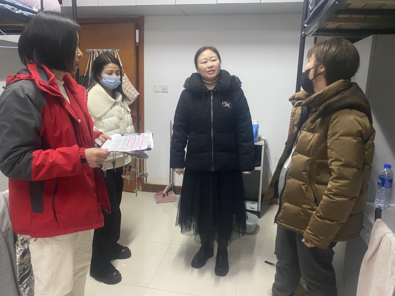 为杜绝安全隐患,确保学生公寓的安全稳定,1月29日下午,瑞金路街道办事处副主任殷耀华一行,对明故宫校区学生公寓进行了安全检查。集团副总经理颜萌、校保卫处消防科以及公寓服务中心相关人员陪同检查。