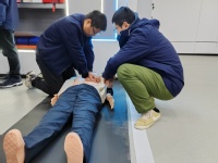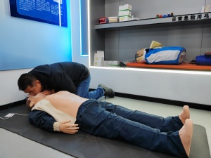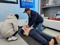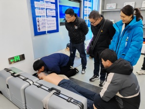 在保卫处技防信息科科长石振东的带领下,大家先后观摩了安全教育体验馆的安全文化主题区、公共服务区、序厅、国家安全厅和公共安全厅。参观过程中,石振东细致地介绍了馆内的展板、标识标牌、安全视频,智能大屏幕和馆内每一个互动体验模块中涵盖的安全知识和应对方法,通过沉浸式场景还原和实操训练设施设备的运用,提升了大家对国家安全、保密安全、防范电信网络诈骗、公共卫生、禁毒宣教、反恐防暴、交通安全的预防、应急逃生和自救互救能力。石科长还指导大家如何在突发状况下进行有效心肺苏术救援,海姆利克法急救、交通安全VR体验等各种紧急情况下的应急处置实操训练,使在场人员身临其境感受到紧急情况下应如何沉着冷静、准确快速地应对。