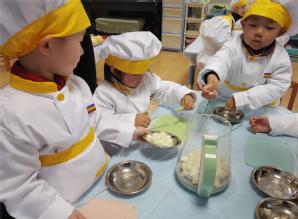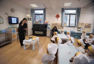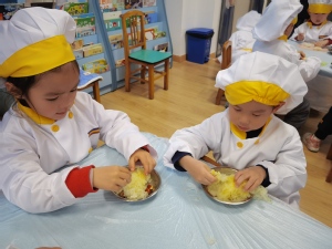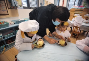 在民间素有“惊蛰吃梨”的习俗。孩子们和老师一起通过洗、切、炖、撕等操作步骤体验做冰糖炖雪梨的快乐,感受吃梨的习俗,在动手操作中品味着惊蛰节气的民俗文化。