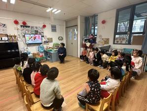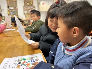 孩子们还通过绘本、故事了解农耕生产与大自然的节律息息相关,在绘本的对话中了解惊蛰的习俗特点,感受春天的气息。
